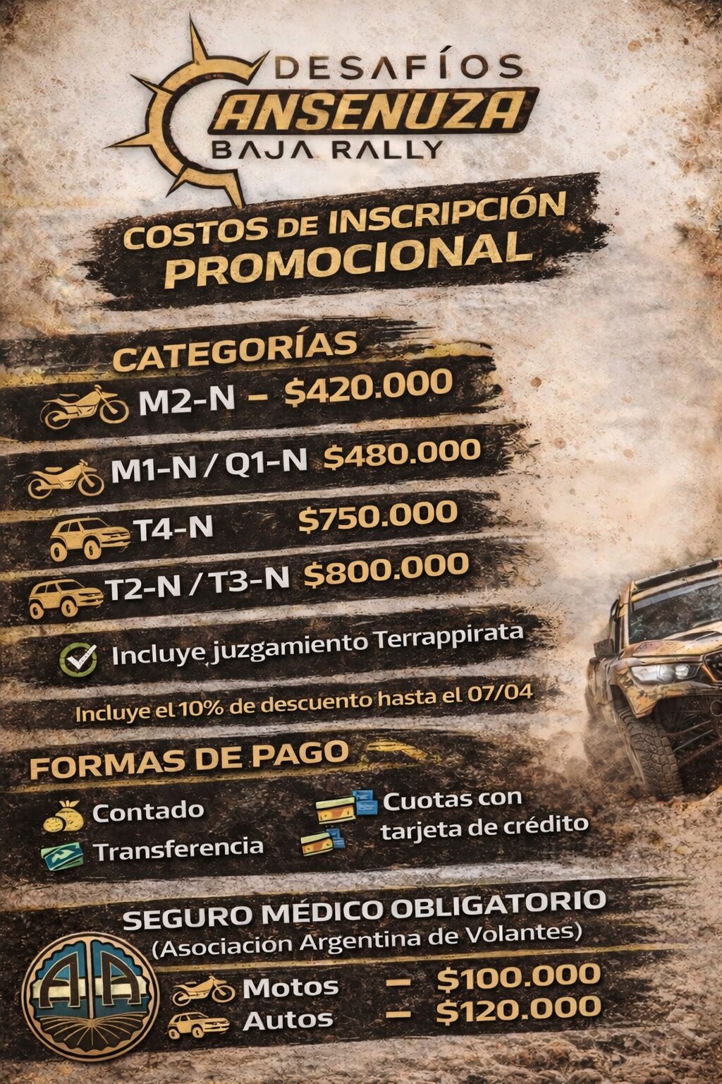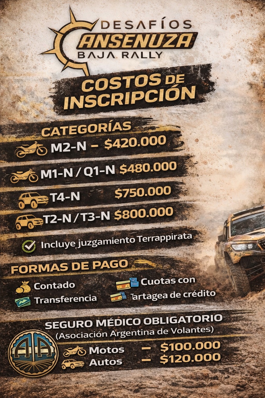 SEÑA OBLIGATORIA DE 150.000 . (Cargar comprobante de pago antes de enviar el formulario) | ALIAS: desafiosansenuza CUIT/CUIL: 30717582892 | CBU: 0720516320000000034122